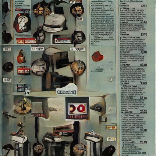I took this digitised collection and fed over 16,000 pages into StyleGAN2, a GAN based machine learning algorithm, taking a snapshot of the trained model at 15,000 and 3000 steps. I set this model to work creating it's own horrific interpretation of the Argos catalog.