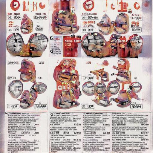 The output from the model is eerily nightmarish resembling something closer to an abstract comic at 3000 steps, and slowly moving further towards an infinite catalog of cursed clocks and rings at 15,000 steps.